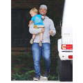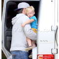 A sporty Hilary Duff is snapped with hubby Mike Comrie and son Luca before heading to music class on Aug. 1, 2013.