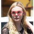 Elle Fanning dons some crazy round shades while grocery shopping with her fam.