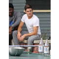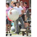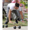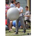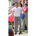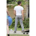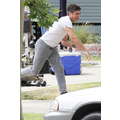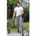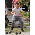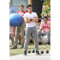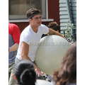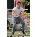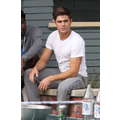 Zac Efron showed off his um, impressive physique in a pair of tight sweatpants on the set of The Townies on Wednesday.