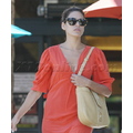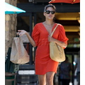 Eva Mendes rocked a smokin' hot orange dress when we caught her grocery shopping over the weekend.