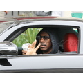 Eddie Murphy grabs coffee in his pricey Mercedes.