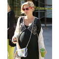 Elsa Pataky, who is nine months pregnant with twins, got a boost with a green juice drink at Pacific Coast Greens in Malibu on Monday.
