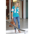 Fergie wears a Miami Dolphins jersey just hours before her Monday Night Football performance.