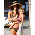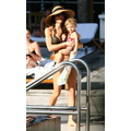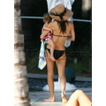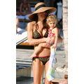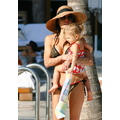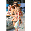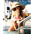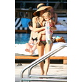 The former Real Housewife flaunted her taut tummy and hit the pool with her daughter Bryn.