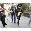 After performing at the Constitution square in Bucharest, Lady Gaga eats popcorn and plays with a puppy at the Herastrau Park in Bucharest, Romania.