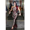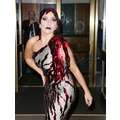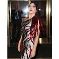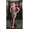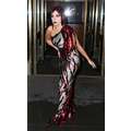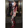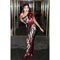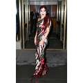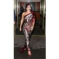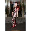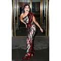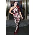 Wearing a fiery frock, Lady Gaga posed awkwardly in New York City on Dec. 2, 2014.