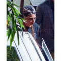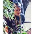 Lady Gaga is getting ready for Halloween festivities in Paris as she steps out with heavy eye make up, bead necklaces and a Slayer t-shirt.