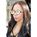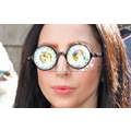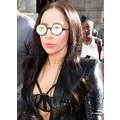 The singer wears bizarre eyewear out in England.