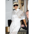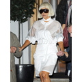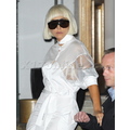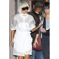 Lady Gaga tiptoes out of her hotel in a pair of sky high pumps.