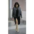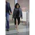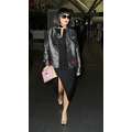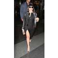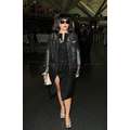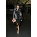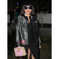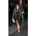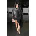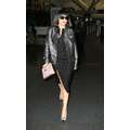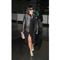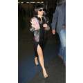 Lady Gaga arrives at JFK airport, showing off her legs a bit while strutting in her black dress.