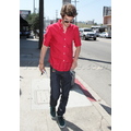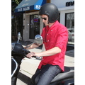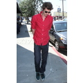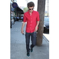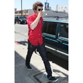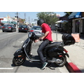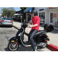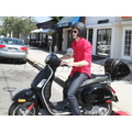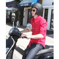 Andrew Garfield leaves Joan's on Third by Vespa.