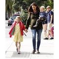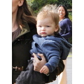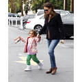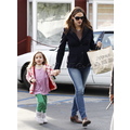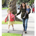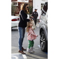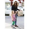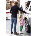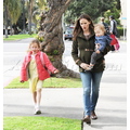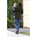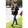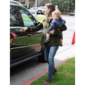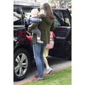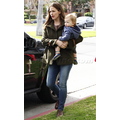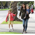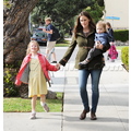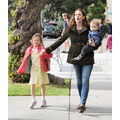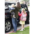 Jennifer Garner with baby Samuel picking up Violet and Seraphina from school in Brentwood while Ben Affleck goes to a meeting.