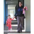 Jennifer Garner carries her little girl while checking out new rides.