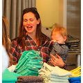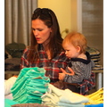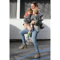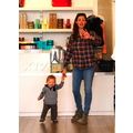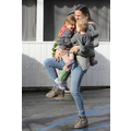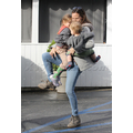The actress tries to carry both of her children.