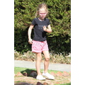 Jennifer and Violet hold hands at the Botanical Gardens.