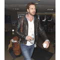 Gerard Butler was in good spirits after hopping off a plane at LAX on Wednesday night.