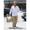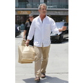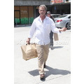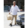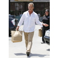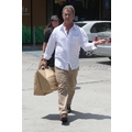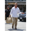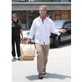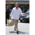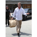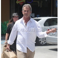 The actor looks bothered leaving lunch.