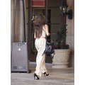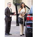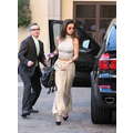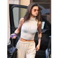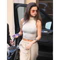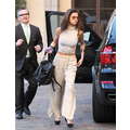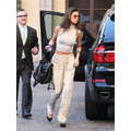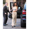 Selena Gomez showed off her tummy during an early morning meeting on Friday.