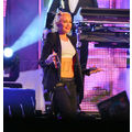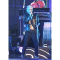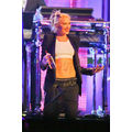 Gwen Stefani shows off her ripped abs while performing.