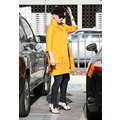 Gwen Stefani caught our attention with a bright yellow coat on Wednesday afternoon.
