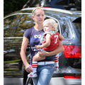 Gwen Stefani Wears Striped Dress While Hanging With Son Kingston