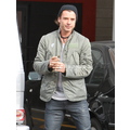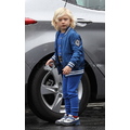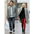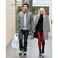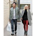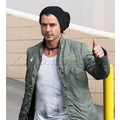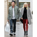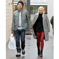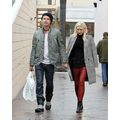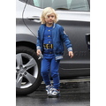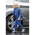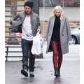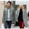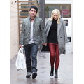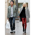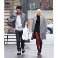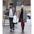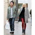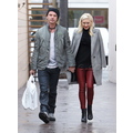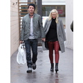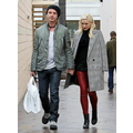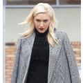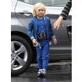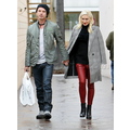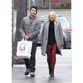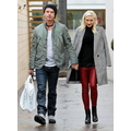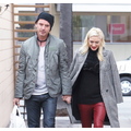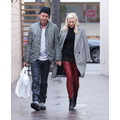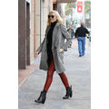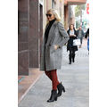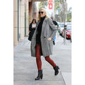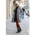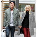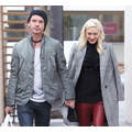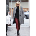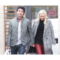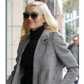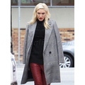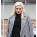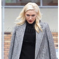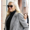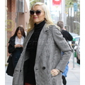 Gwen Stefani rocks a houndstooth coat with a smile.