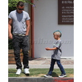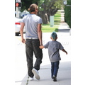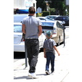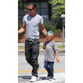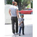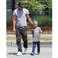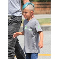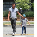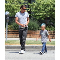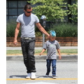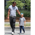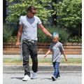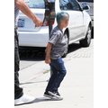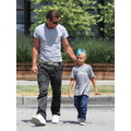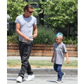 Gavin Rossdale picks up his son, Kingston, who is sporting a blue mowhawk.