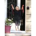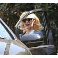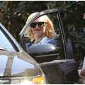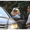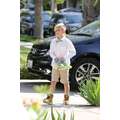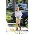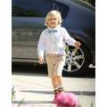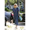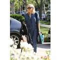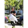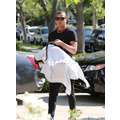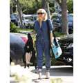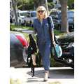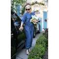 Gwen Stefani showed off her slim frame in a trendy denim jumpsuit while taking her newborn to Easter dinner.