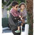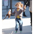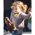 Halle Berry's daughter monkey held on tight to her sock monkey during a shopping trip yesterday.