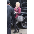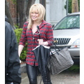 Hlary Duff tries not to get her new 'do wet after leaving the salon in Santa Monica.