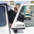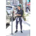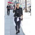 A blue-haired Hilary Duff goes shopping at Saint Laurent in Beverly Hills on Monday.