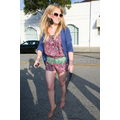 Hilary Duff wears a floral romper to Byron and Tracey hair salon.