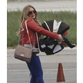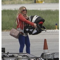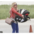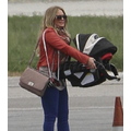 Hilary Duff takes her newborn son Luca on his first private plane ride.