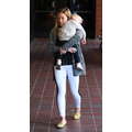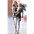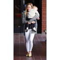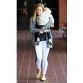 The actress carries her sleepy baby boy.