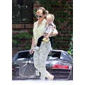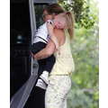 Hilary Duff looked sunny yesterday while running errands in Los Angeles with her adorable son.