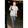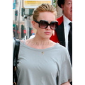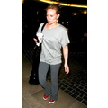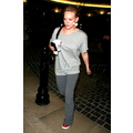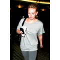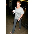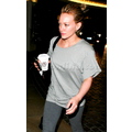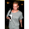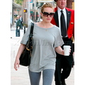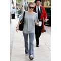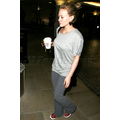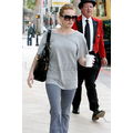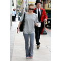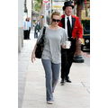Ms. Duff walks Rodeo with a cup of coffee in her hand!