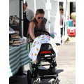 Hilary Duff takes baby Luca to the farmer's market for some coconut water and fresh produce.