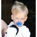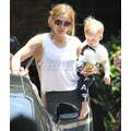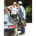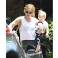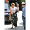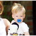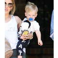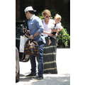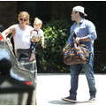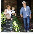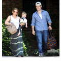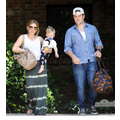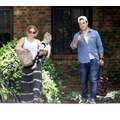 Hilary Duff, Mike Comrie and baby Luca woth a pacifier in his mouth leave a play date together.