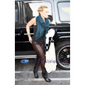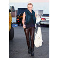 Hilary Duff continues her fascination with pleather by donning skinny pleather pants in 80 degree weather!