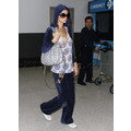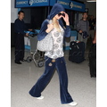 Paris Hilton travels through LAX wearing a hood.