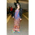 Paris Hilton wears groovy outfit as she touches down at LAX from India on Wednesday.