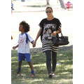 Heidi Klum hides belly behind big shirt amid pregnancy rumors at kids soccer game September 8, 2013