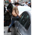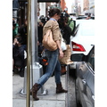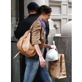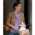 Katie Holmes stepped out of her NYC apartment today with a smile on her face and a Bloomie's bag in her hand.