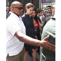 After filing for divorce from husband Tom Cruise on Friday, Katie Holmes made her first public appearance in NYC today.