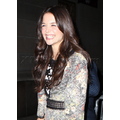 Katie Holmes smiles and signs autographs outside the Music Box Theater after a performance of "Dead Accounts."