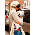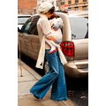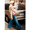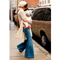 Katie goes boho in a white hat and bell bottom jeans