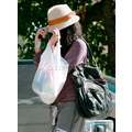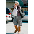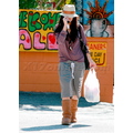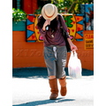 Vanessa shot her signature pose of hiding behind her hat/bag. We're starting to think there's something seriously wrong with her face!