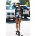 Vanessa Hudgens shows off shorts shorts and her wrecked Audi in LA.