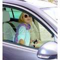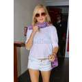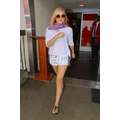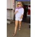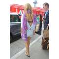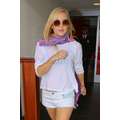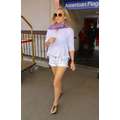 Kate Hudson showed off her striped bra in a backless shirt at the airport on Tuesday.