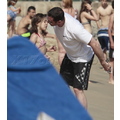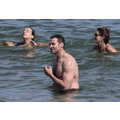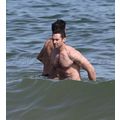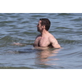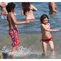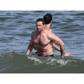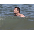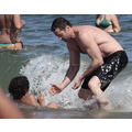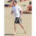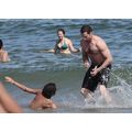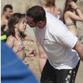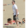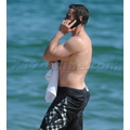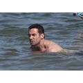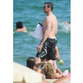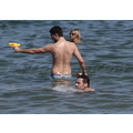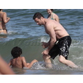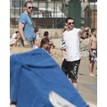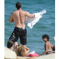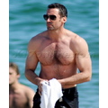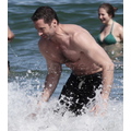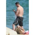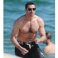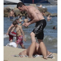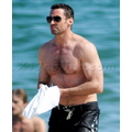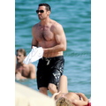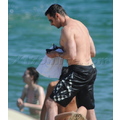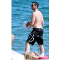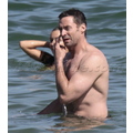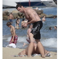 Hugh Jackman showing off his guns while with his family in Barcelona.